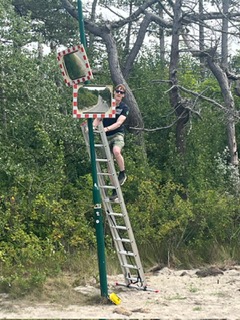 Hulde aan deze SBEV bestuursleden. Reinier en Folkert hebben samen de, door een (uiteraard) anonymus, beschadigde spiegels op de Kampweg opnieuw gesteld – tegenover de uitgang van Koekoek / Strandplevier.